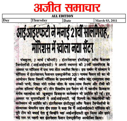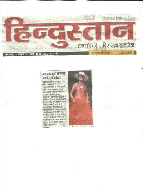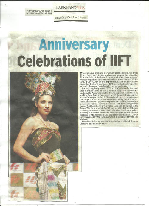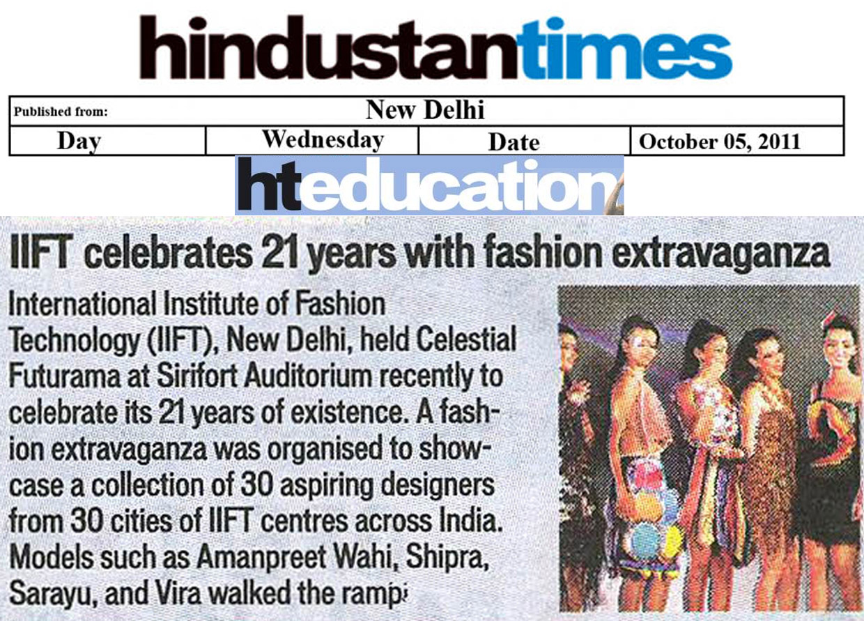 IIFT Judged Best Fashion Institute by Indian Federation of Fashion Development (IFFD) in India Fashion Summit, Aug 2012 New Delhi |