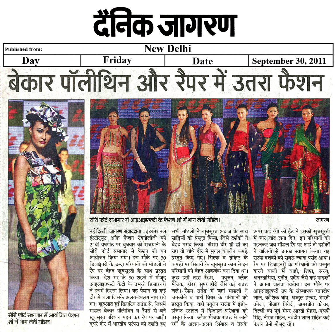 IIFT Designers has been invited to showcased their Special Design Presentation in Grand Fashion Show on the Occasion of 50th year of Independence of Trinidad & Tobago and its 50th year of diplomatic relation with India , Aug 2012 New Delhi |